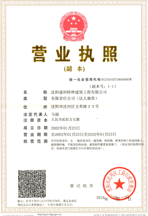 隸屬沈陽(yáng)市建設(shè)工程質(zhì)量檢測(cè)中心有限公司,是沈陽(yáng)市最早成立的國(guó)有建筑結(jié)構(gòu)加固公司之一。公司主要經(jīng)營(yíng):建筑物、構(gòu)筑物、橋梁結(jié)構(gòu)工程加固施工;建筑物糾偏、平移及結(jié)構(gòu)補(bǔ)強(qiáng);建筑構(gòu)件灌漿連接施工等,于2002年1月23日在沈陽(yáng)工商局注冊(cè),公司注冊(cè)資本人民幣200(萬(wàn)元),公司辦公地址位于沈陽(yáng)市沈河區(qū)文萃路33號(hào),在職員工25人,公司成立以來(lái),先后承擔(dān)了遼寧省及沈陽(yáng)市的大型工程改造及加固施工工程。