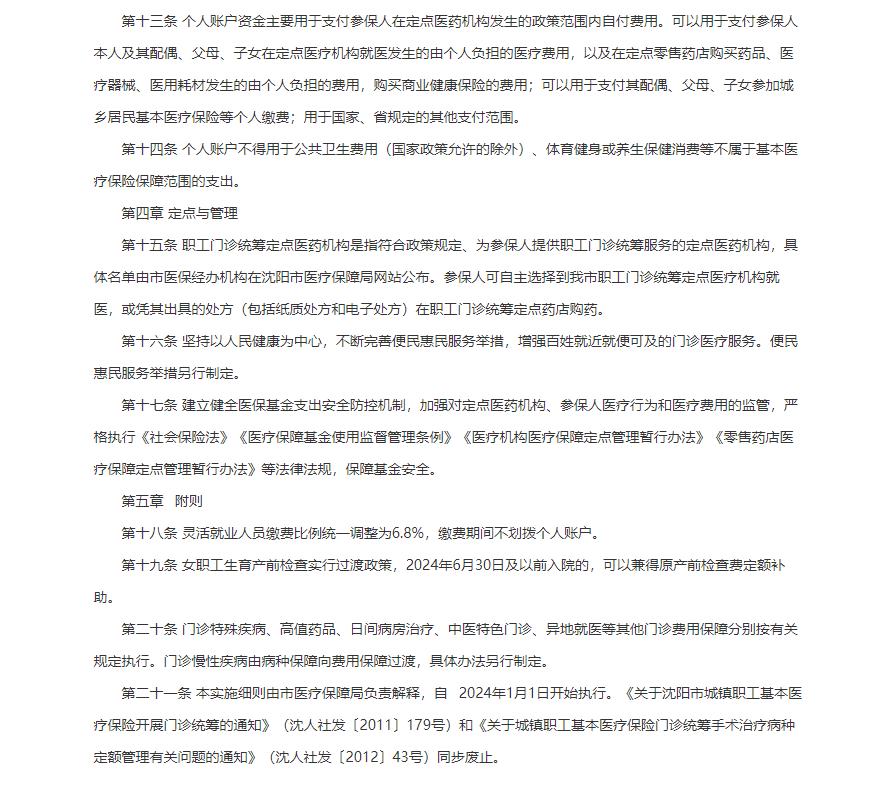 沈陽市職工基本醫(yī)療保險門診共濟保障機制實施細則